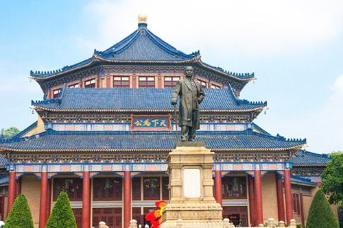 廣州人民和海外華僑為紀念孫中山先生集資興建的。中山紀念堂于1929年1月動工,1931年11月建成。1956年,重鑄的高5米的孫中山先生銅像屹立在紀念堂前。1963年對紀念堂進行了大規模翻修,屋頂全部采用藍色琉璃瓦,在6萬多平方米的公園四周增建了鐵柵欄,在園內栽種了很多樹木、花卉。